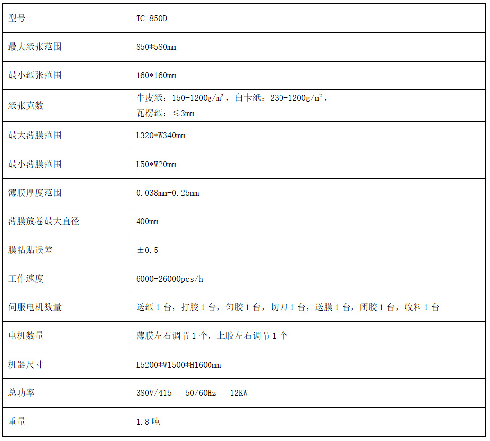 5、貼膜部:送膜采用伺服電機傳送及滾筒吸附連續式粘貼,相比傳統間歇式粘貼具有貼合速度快,精度高,對薄膜要求低等優點。